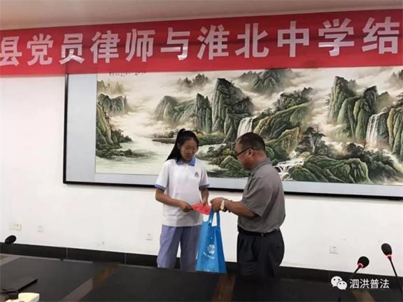 2019年11月,泗洪縣律師協(xié)會(huì)組織全縣20名黨員律師前往江蘇省淮北中學(xué),給家庭困難的在校學(xué)生送去學(xué)習(xí)文具、資助金等。
